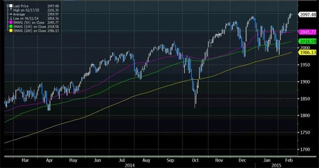 Od 19. prosince 2014 do 6. února šel trh do strany. I když si laici mohou myslet, že je trh zdravý, není to tak. Legendární trader Jesse Livermore vsadil před rokem 1929 SHORT, protože na trhu identifikoval tento varovný signál. Když je trh tažen příliš vysoko malými objemy, nekončí to většinou dobře.