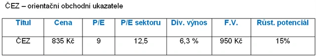 ČEZ je dle našich kritérií podhodnocený, férová hodnota titulu je mnohem výše. Titul disponuje výbornými dlouhodobými fundamenty, zajímavým růstovým potenciálem a nadstandardním dividendovým výnosem.