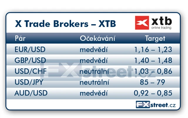 Každá společnost uvádí svůj výhled pro hlavní měnové páry a dále přibližné cílové ceny v případě naplnění prognózy.