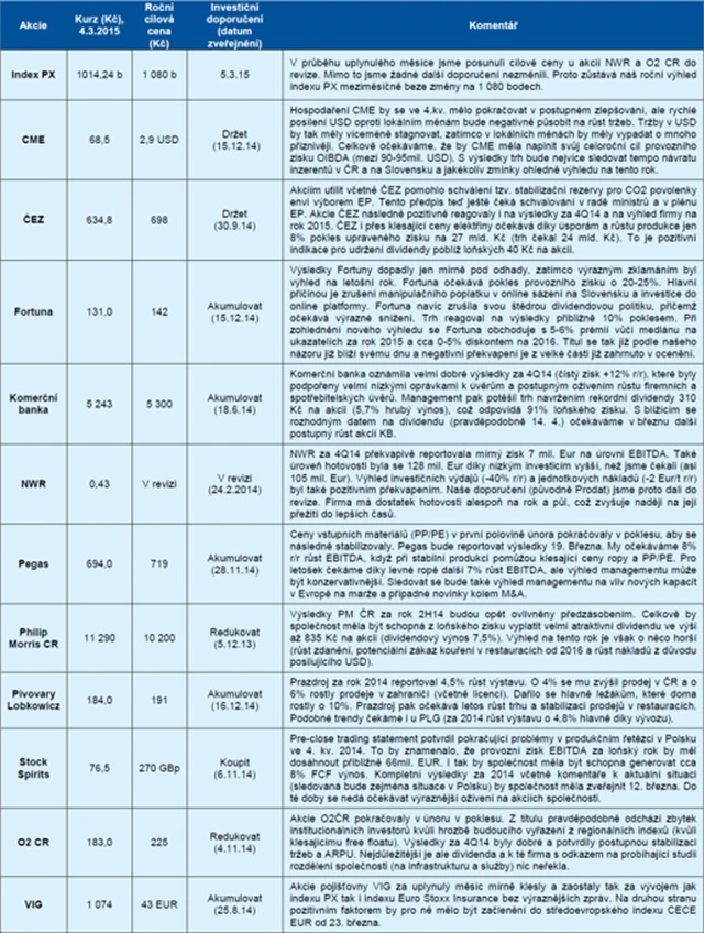 ČS: Březnová strategie pro české akcie (6. 3. 2015)