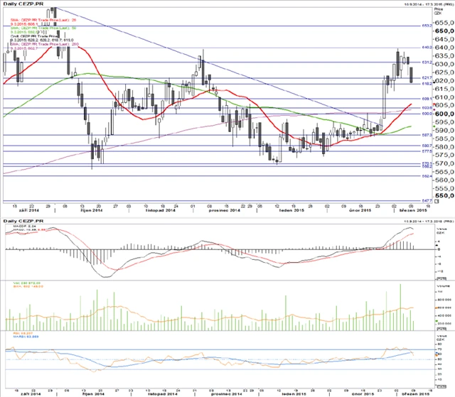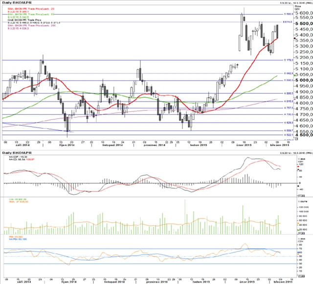 Komerční banka a ČEZ: České blue chips pohledem technické analýzy (10. 3. 2015)