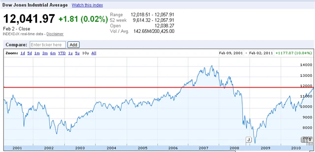 Index Dow Jones Industrial Average již v druhé polovině minulého týdne několikrát testoval úroveň 12 000 bodů, ale úspěšně uzavřít nad ní se investorům podařilo až v úterý. Ve středu se index nad touto metou s přehledem udržel. Stalo se tak poprvé po více než 2 a půl letech, naposledy se to podařilo 19. června 2008. Pro investory i pro veřejnost tento fakt znamená lepší náladu a vyšší stupeň důvěry v zotavení ekonomiky, tedy přesně to, čeho se snaží docílit Ben Bernanke.