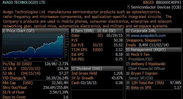 Byznys Avago sice nepůsobí tak sexy jako třeba aplikace na chytré telefony nebo sociální média, nicméně jde o výrobce polovodičů, který se soustředí na bezdrátové komunikace, optická vlákna a LED technologie. Firma dodává součástky pro iPhony. Uvedení iPhonu 6 znamenalo pro Avago silný růst. Výkonnost se mírně zhoršila s tím, jak firma svými výsledky zaostala za očekáváními taženými úspěchem iPhonu a nedávnými akvizicemi. Z historické výkonnosti lze vyčíst, že firma našla způsob, jak si zajistit pokračování úspěchu, a ne podléhat volatilitě jako ostatní malé technologické akcie během posledních několika let.