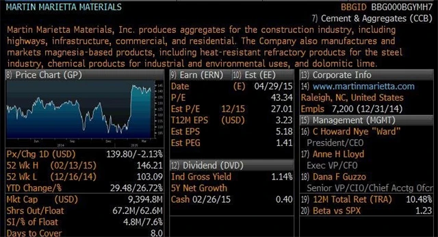Jde o jednu z "nudných" akcií, které většina investorů přehlíží, dokud je na ně někdo neupozorní. Firma je jedním z největších producentů vybraných stavebních materiálů v USA. V roce 2014 provedla akvizici svého největšího konkurenta Texas Industries za 3 miliardy USD, která upevnila její tržní pozici. Optimisté říkají, že je firma na začátku mnohaletého cyklu růstu tržeb a zisků díky své dominanci a slibnému vývoji sektoru stavebnictví, který popohání ekonomické oživení USA. Pesimisté naopak poukazují na relativně vysoké P/E a slabé dividendy.
