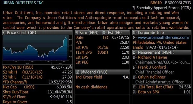 Společnosti Urban Outfitters se v posledních letech příliš nedařilo, její akcie spadly o zhruba 40 % z maxima 45 USD v polovině roku 2013 na minimum kolem 28 USD na konci roku 2014. Před několika měsíci se však situace začala měnit. Akcie jsou nyní na historických maximech díky lepším než očekávaným výsledkům, které překvapily hlavně na úrovni tržeb.