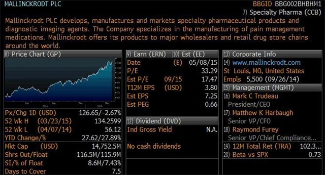 Mallinckrodt je jednou z evropských akcií, která by neměla chybět na nákupním seznamu žádného investora. Firma provedla akvizici Questcor Pharmaceuticals a Cadence Pharmaceuticals. Akvizice Mallinckrodt pomohly, akcie zhodnotila o 100 % v posledních 12 měsících. Vzhledem k větru v zádech v sektoru zdravotní péče a farmacie není divu, že růst pokračuje.