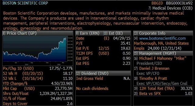 Boston Scientific Corporation je divokou kartou již od roku 2012. Akcie zhodnotila za poslední roky o 200 % a nadprůměrná výkonnost pokračovala i v prvním čtvrtletí 2015. Výrobce zdravotnických zařízení vydělává na kvalitních produktech a pokračujícím růstu v sektoru způsobeném stárnutím baby boomers a organickým růstem mladých trzích, kde bohatnutí obyvatel vytváří poptávku po moderních zdravotnických službách. Firma se veze na vlně tohoto trendu se zařízeními, jako jsou endoskopy nebo kardiologické monitory, a nemusí se bát problémů spojených se schvalováním patentů a jejich expiracemi. Akcie zatím působí jako rozumně oceněná, přitom má firma velmi dobré dlouhodobé vyhlídky.