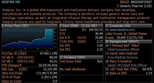 Farmaceutický gigant Pfizer nabídl za tuto firmu 17 miliard USD a její akcie zareagovaly skokovým nárůstem. Pfizer se zajímá zejména o injekce "biosimilars", které fungují podobně jako stávající léky, přičemž jde o zcela jinou účinnou látku. Společnost se bude muset vypořádat s expirací některých klíčových patentů včetně značek Celebrex a Lipitor, které nedávno ztratily exkluzivitu. Největší růstový potenciál ceny akcie může již být vyčerpán. Zahýbat s kurzem by možná ještě mohlo zveřejnění detailů dohody.