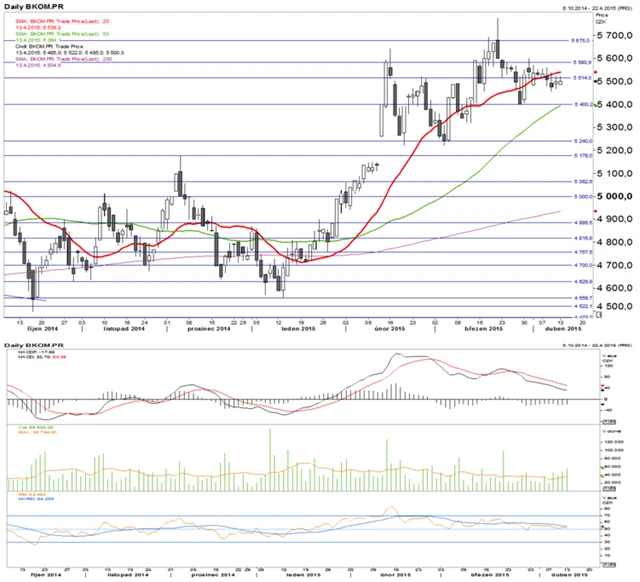 Komerční banka a ČEZ: České blue chips pohledem technické analýzy (14. 4. 2015)