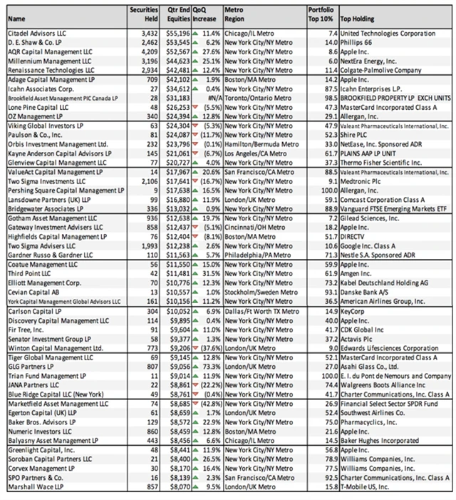 Nejoblíbenější akcie v portfoliích 50 největších hedgeových fondů