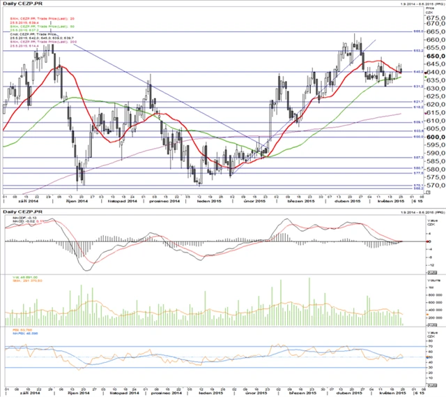 Komerční banka a ČEZ: České blue chips pohledem technické analýzy (26. 5. 2015)