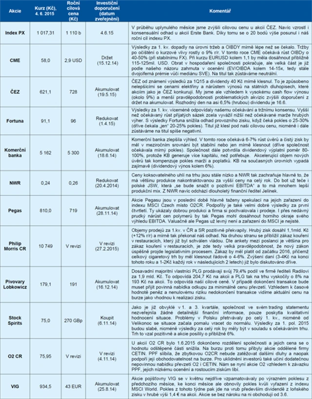 ČS: Červnová strategie pro české akcie (5. 6. 2015)
