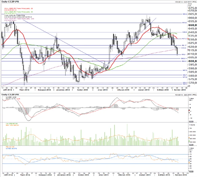 Komerční banka a ČEZ: České blue chips pohledem technické analýzy (9. 6. 2015)