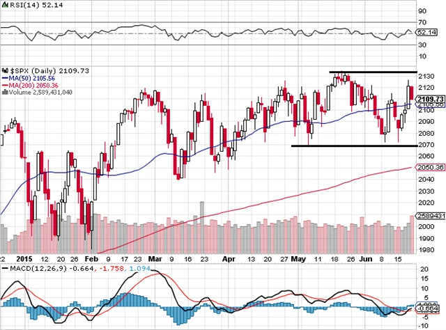 Týdenní svíčka indexu S&P 500 je zelená s růstem o 0,76 %. Fed nepřekvapil – úroková sazba se do konce roku zvýší jednou nebo dvakrát, celkové tempo zvyšování úroků by ale mělo být velice pozvolné.