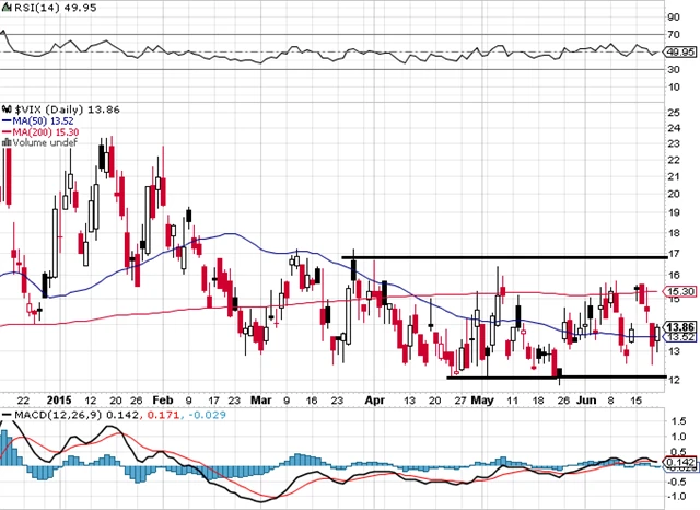 Index volatility VIX se drží v polovině rozpětí 12-17 bodů. V pátek uzavřel na téměř stejné úrovni jako před týdnem.