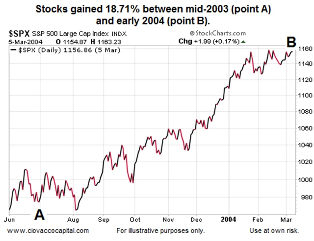 Nejdelší období skepticismu od roku 2003 tedy máme za sebou. Investice v polovině roku 2003 ve zpětném zrcátku vypadá velice atraktivně.
