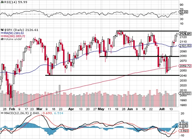Index S&P 500 na začátku července po dlouhé době otestoval 200denní klouzavý průměr. Od té doby neuplynuly ani dva týdny a trh je opět poblíž historických maxim. Ta index pravděpodobně brzy otestuje, je na horní hraně dlouhodobého rozpětí. Let výše však za sebou zanechal několik cenových odskoků. Zda se podaří dříve prolomit rezistenci, nebo uzavřít cenové odskoky a zůstat v rozpětí, se pravděpodobně ukáže již během dalšího týdne.
