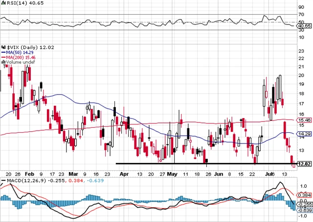 Index volatility VIX spadl z 20 na 12 bodů. Tento výrazný pohyb původně se formující růstový trend zlomil v optimistický signál pro akcie.
