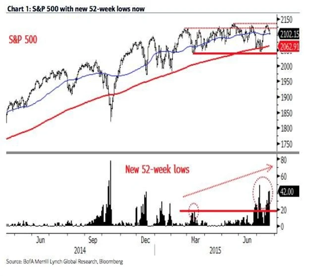 Americká rally hnije zevnitř. Index S&P 500 prolomil trendovou linii, která platila od března 2009, a signálů možné korekce přibývá