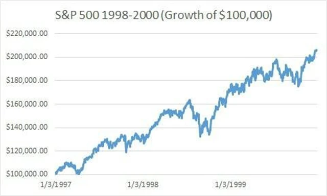 Situace na první pohled nevypadala růžově, ale následující rok byl pro hospodářství USA jedním z nejlepších vůbec. HDP rostl neskutečně rychle a akcie se vydaly vzhůru, aby za rok a půl přidaly dalších 54 % a svůj raketový růst zastavily až po prasknutí internetové bubliny.