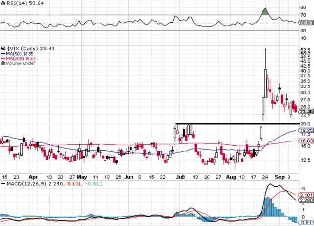 Index volatility VIX zůstává nad historickým průměrem 20 a pro akcie vysílá negativní signál.