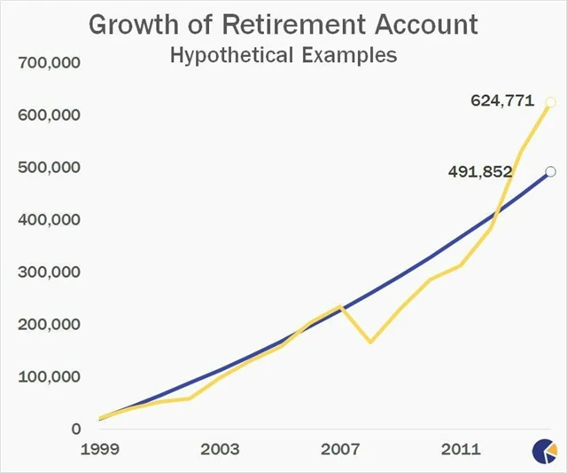 Pokud byste ale stejnou částku mezi lety 1999 a 2014 investovali do ETF kopírujícího akciový index S&P 500, jehož průměrný roční výnos byl v tomto období taktéž 5,2 %, naspořili byste za stejně dlouhou dobu dokonce 620 000 Kč. A to navzdory, respektive právě díky výraznému propadu cen akcií v USA v roce 2008.