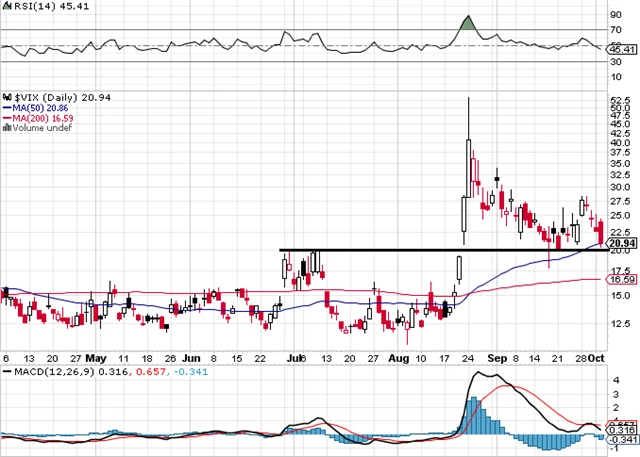 Index volatility VIX se přiblížil k historickému průměru 20, ale pro akcie stále vysílá medvědí signál.