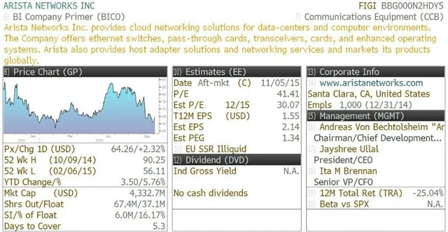 Arista řeší speciální požadavky firem na cloudové sítě, včetně automatizace práce a analytiky, a umožňuje rychlé přizpůsobení se požadavkům třetích stran. Na rozdíl od konkurentů využívá Arista operační systém Linux, zákazníkům tak poskytuje přístup ke všem otevřeným nástrojům této platformy. Mezi důležité klienty patří eBay, Facebook, Microsoft a Yahoo!. V posledním kvartálu vzrostly firmě tržby o zhruba 42 % meziročně.