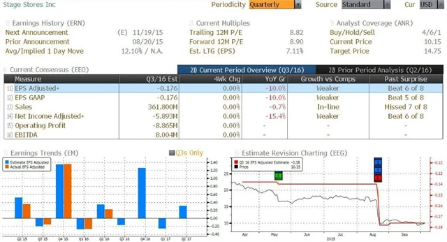 Stage Stores má ale přímý marketing s velkým potenciálem v rámci existující klientské základny. Má dostatek likvidity, kterou podporuje silné provozní cash flow a 350milionový revolvingový úvěr splatný až v roce 2019. Při využití spodní hranice pásma výhledu zisku se akcie obchoduje s P/E necelých 11 a nabízí atraktivní dividendový výnos.