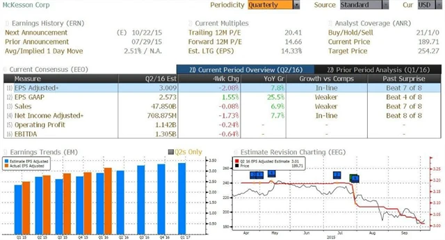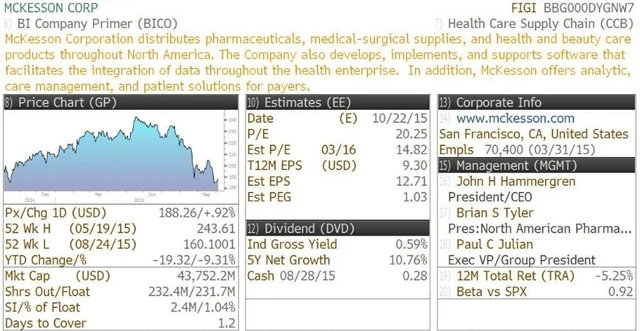 McKesson je největším distributorem léků a drogistického zboží v Severní Americe. Podpořena rostoucí poptávkou po farmacii a chytrými akvizicemi firma zažívá období mimořádně stabilního růstu (v průměru během uplynulé dekády o 14 % ročně).