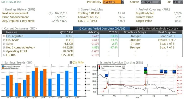 SUPERVALU je jedním z největších obchodníků se smíšeným zbožím v USA. Vzhledem k prodeji téměř poloviny aktiv před třemi lety a úspěšnému obratu u zbývajících provozů se společnosti povedl comeback poté, co se octla na okraji bankrotu.