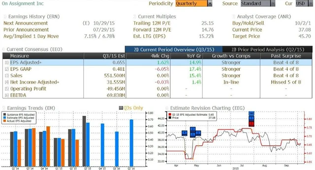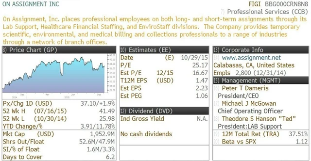 Akcie On Assignment se během minulého měsíce propadly o 9 % a jsou 16 % pod svým 52týdenním maximem. S P/E 16 působí atraktivně vzhledem k provoznímu momentu. Firmě bude nahrávat zlepšující se stav amerického trhu práce. Společnost se zabývá umisťováním kvalifikovaných pracovníků do sektorů technologií, inženýrství a biotechnologií.