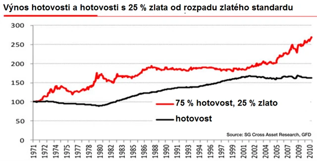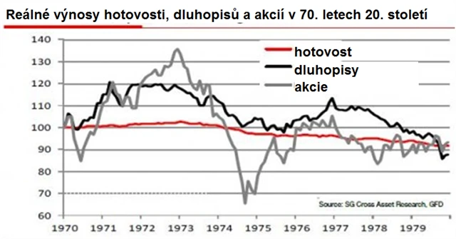 Odvolává se na statistiku ze 70. let minulého století, kdy reálné výnosy z držení hotovosti byly podobné jako výnosy z investic v akciích či dluhopisech.