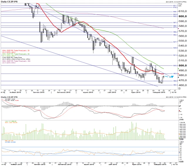 Komerční banka a ČEZ: České blue chips pohledem technické analýzy (24. 11. 2015)