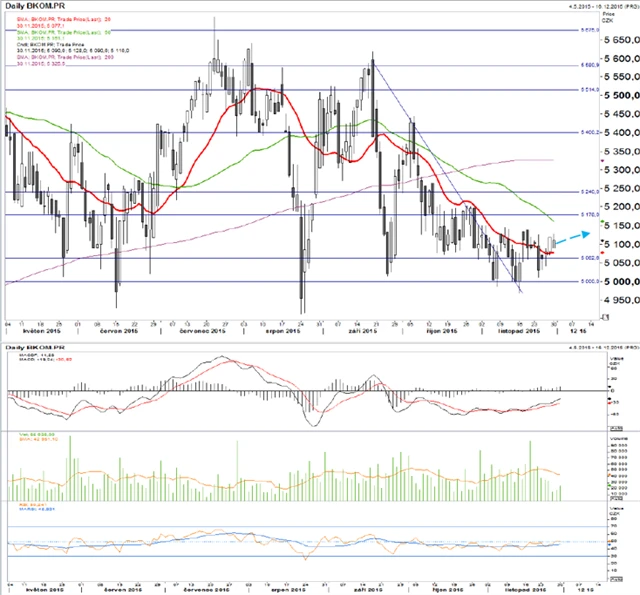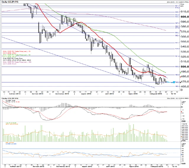 Komerční banka a ČEZ: České blue chips pohledem technické analýzy (1. 12. 2015)