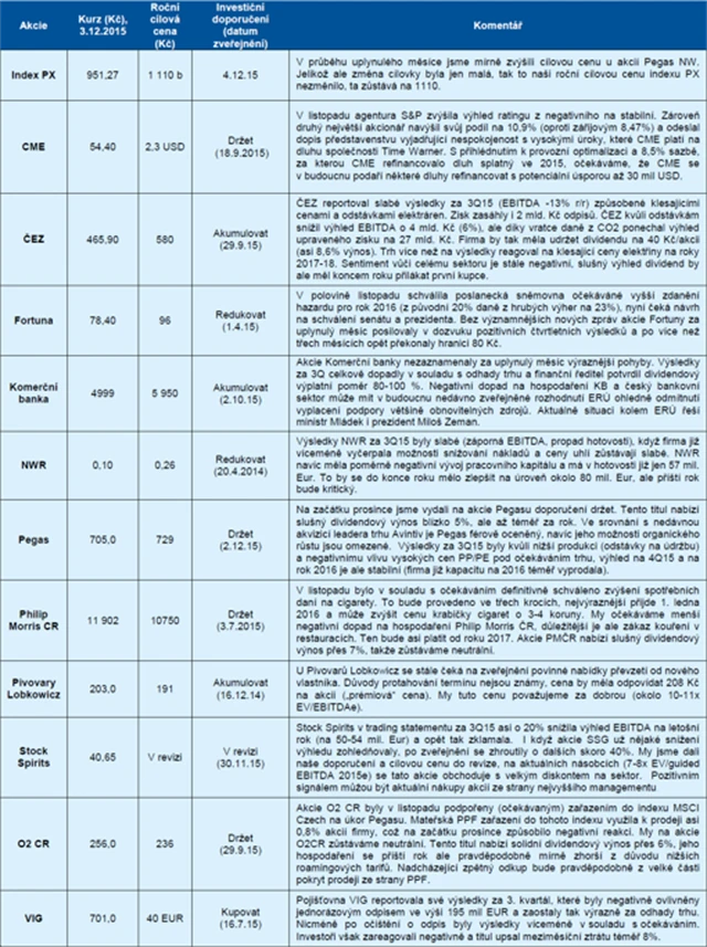 ČS: Prosincová strategie pro české akcie (4. 12. 2015)