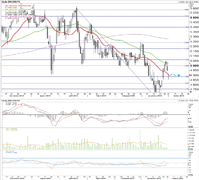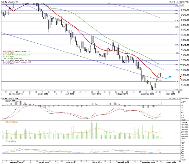 Komerční banka a ČEZ: České blue chips pohledem technické analýzy (5. 1. 2016)