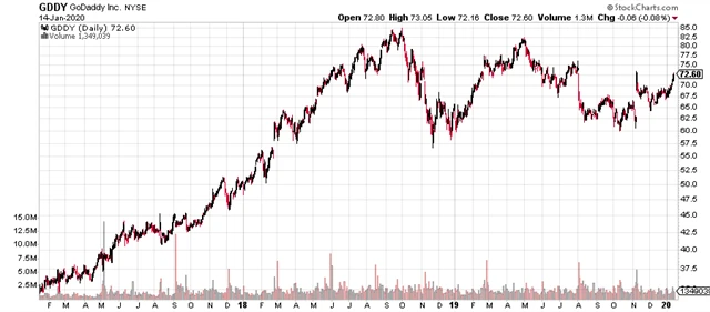 Akcie poskytovatele all-in-one řešení pro tvorbu webů sice loni posílily "jen" o 5 %, ale výsledky za třetí čtvrtletí překonaly (s výjimkou volného cash flow) očekávání analytiků. Firma má pro rok 2020 poměrně ambiciózní plány, což by podle analytiků mohlo znamenat vysoké investice. S disciplinovaným přístupem by to firma měla zvládnout. Cílové ceny se pohybují mezi 81 a 95 USD (průměr 89,86 USD) při současné ceně 72,6 USD (zavírací ceny jsou ze 14. ledna).