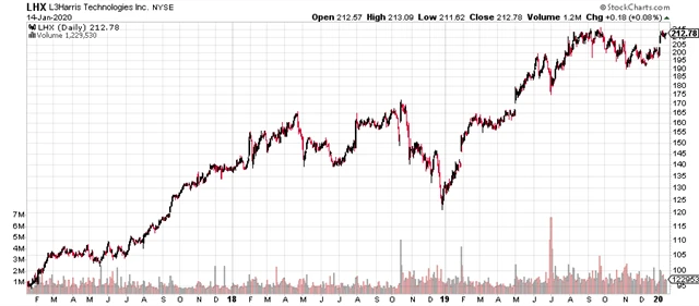 Rychlejší než očekávaná integrace společností působících v sektoru obrany, L3 Technologies a Harris Corporation, které se sloučily v červnu 2019, a synergie jejich výnosů pomáhají překonávat očekávání analytiků. Mohly by se otevírat i nové příležitosti, zejména v oblasti průzkumu vesmíru, kde hraje velikost podstatnou roli. I díky tomu jsou cílové ceny (rozmezí 225 až 247 USD, průměr 140,83 USD) jasně nad současnou cenou (212,78 USD).
