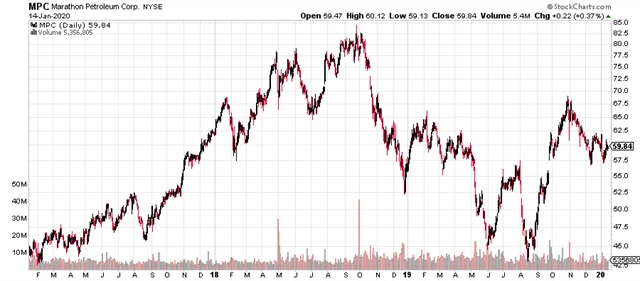Největší rafinérská společnost v USA se v poslední době stále více angažuje v oblasti distribuce i maloobchodu na čerpacích stanicích. Aktivistická společnost Elliott Management požaduje rozdělení firmy, k čemuž by mohlo letos dojít. Pokud ovšem k rozdělení nedojde, měla by firma udělat vše pro to, aby cena akcií odrážela všechny její činnosti. To znamená, že cena akcie (současná cena 59,84 USD) má stále velký potenciál růst, což zohledňují cílové ceny od analytiků (67 až 95 USD, průměr 79,13 USD).