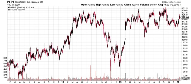 Technologická firma, která považuje za největší kybernetickou hrozbu zaměstnance firem, nabízí řešení, která chrání všechny kybernetické kanály včetně e-mailu, webu, cloudu a sociálních médií. I přes silnou konkurenci má firma silné postavení na trhu a mezi roky 2020 a 2024 očekává růst tržeb o 20 %. Podle toho by pak měl vypadat i vývoj ceny akcií (nyní 122,44 USD), cílové ceny pro letošní rok se nacházejí mezi 135 a 160 USD (průměr 145,78 USD).