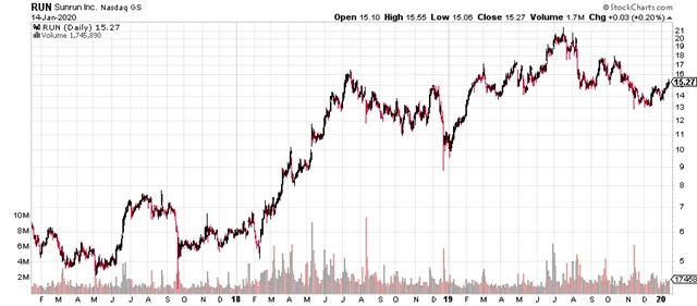 Výrobce a prodejce solárních panelů pro retailové klienty sice loni v prvním pololetí nedokázal naplnit očekávání investorů, třetí čtvrtletí ale ukázalo potenciál růstu trhu se solární energií. Firma je jedničkou ve svém segmentu trhu a těží z velké zákaznické základny a působení ve 22 státech USA. Cílové ceny se pohybují mezi 18 a 25 USD (průměr 22 USD) při současné ceně akcie 15,27 USD.