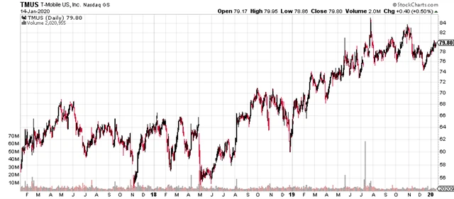 Jedna z největších telekomunikačních firem v USA by měla těžit z fúze se společností Sprint a zavádění sítí páté generace. Rizikem by molo být zrušení tohoto obchodu, ani to by však podle analytiků nemělo ohrozit postavení společnosti. Díky tomu je průměrná cílová cena 94,8 USD (od 86 do 103 USD) zhruba 20 % nad aktuální cenou (79,8 USD).