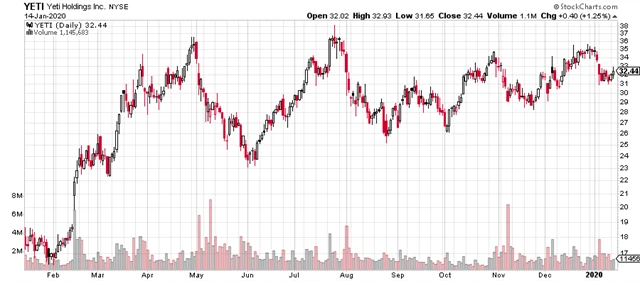 Akcie výrobce outdoorového vybavení sice loni posílily o více než 140 %, ale díky rozšiřování produktové nabídky a velice vstřícnému přijímání novinek na straně zákazníků zůstává favoritem investorů i analytiků. Společnost nedávno začala prodávat své výrobky v síti obchodů Lowe's, takže není překvapením, že jsou cílové ceny (rozmezí 37 až 47 USD, průměr 40,83 USD) poměrně vysoko nad současnou cenou (32,44 USD).