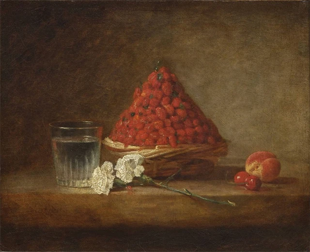 Jean-Siméon Chardin: Ošatka s lesními jahodami (1760)