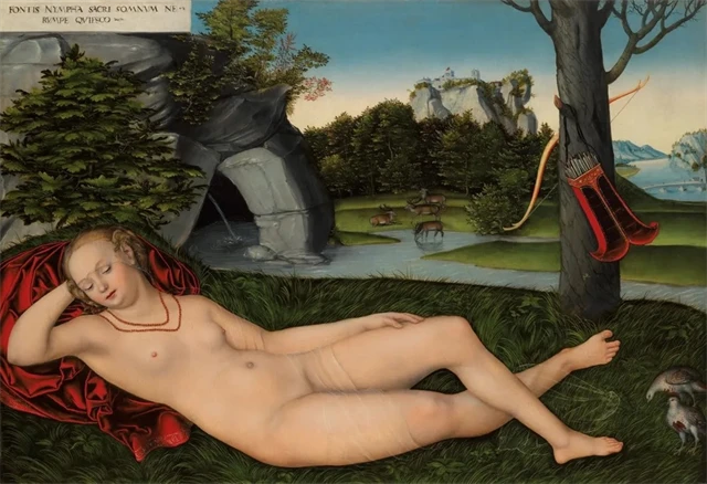 Z privátní kolekce britských znalců a filantropů Cecila a Hildy Lewisových totiž pocházela jasná jednička Týdne klasiků, Cranachova Nymfa u pramene. Více než metrová deska v perfektním stavu s ležícím aktem v popředí a protorenesanční krajinou v pozadí si předaukční odhad kolem sedmi milionů liber mohla rozhodně dovolit. Prestižní provenience signovaného obrazu, jedné ze dvanácti motivických variant, sahá totiž až do rudolfínské Prahy, do císařské obrazárny na Pražském hradě. Rudolf II. si Cranachovy dokonalé malířské techniky velmi cenil, obzvlášť, když šlo o sofistikované ikonografické náměty s velkou dávkou smyslnosti. Při švédském drancování Hradu v roce 1648 se Nymfa patrně dostala do majetku královny Kristiny a po švédských šlechtických sbírkách putovala až do roku 1990, kdy ji stockholmští galeristé objevili pro britské uměnímilovné kruhy. Konečná částka bezmála 9,5 milionu liber (přibližně 265 milionů korun) posunula Nymfu bezpečně do čela Cranachova aukčního žebříčku.