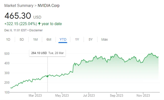 Kalifornskou společnost poškodila omezení vývozu čipů ze strany USA, která byla zavedena z obavy, že by špičkové technologie mohly být použity pro vojenské účely. NVIDIA má stále dominantní postavení v druhé největší ekonomice světa, ale stávající omezení otevírají příležitosti pro konkurenty, jako je například Huawei. Akcie Nvidie si letos připisují 225 %.