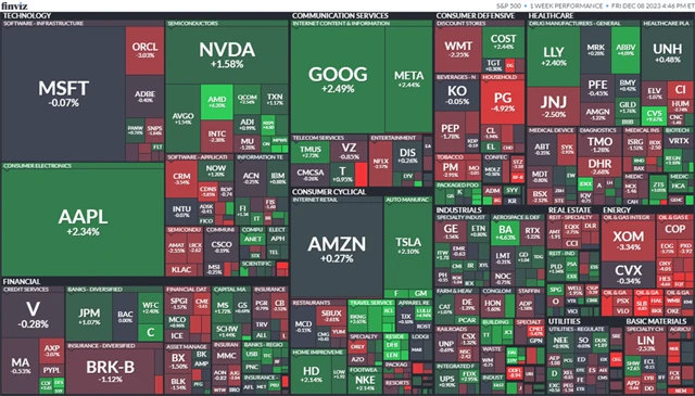 Za celý týden index Dow vzrostl o 0,01 %, S&P 500 posílil o 0,21 % a Nasdaq Composite přidal 0,69 %.