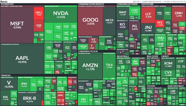 Za celý týden index Dow vzrostl o 2,92 %, S&P 500 posílil o 2,49 % a Nasdaq Composite přidal 2,85 %.