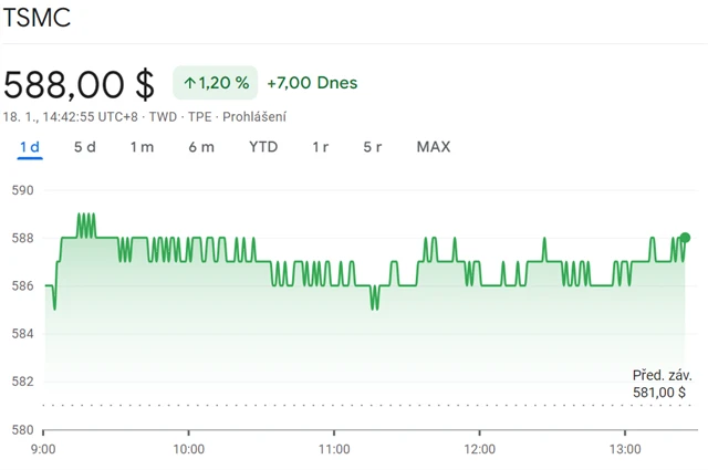 Akcie TSMC během čtvrtečního obchodování vzrostly o 1,2 %.